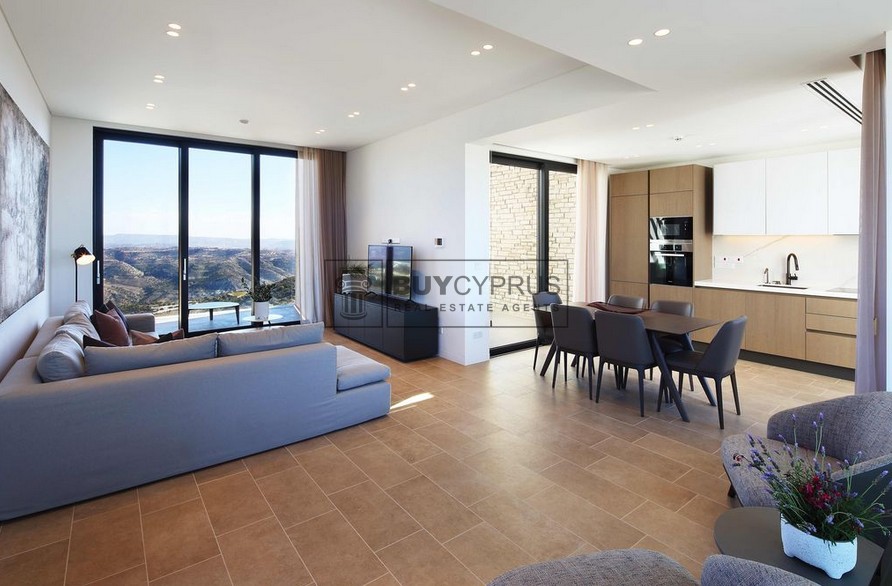 This elegant three bedroom villa is set within an exclusive golf resort in Tsada, offering a perfect blend of contemporary design, Mediterranean lifestyle, and access to high-quality resort-style amenities. Designed to maximize natural light and comfort, the villa provides spacious indoor living areas and a seamless connection to outdoor spaces, ideal for relaxation or entertaining against scenic hillside views.